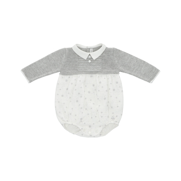 Pelele combinado con cuerpo en lana gris y tela estampada
